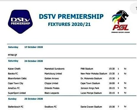 Dstv premiership fixtures 2020/21, pretoria, south africa.